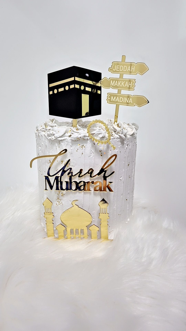 Ensemble cake topper umrah mubarak en acrylique 5 pièces Design A